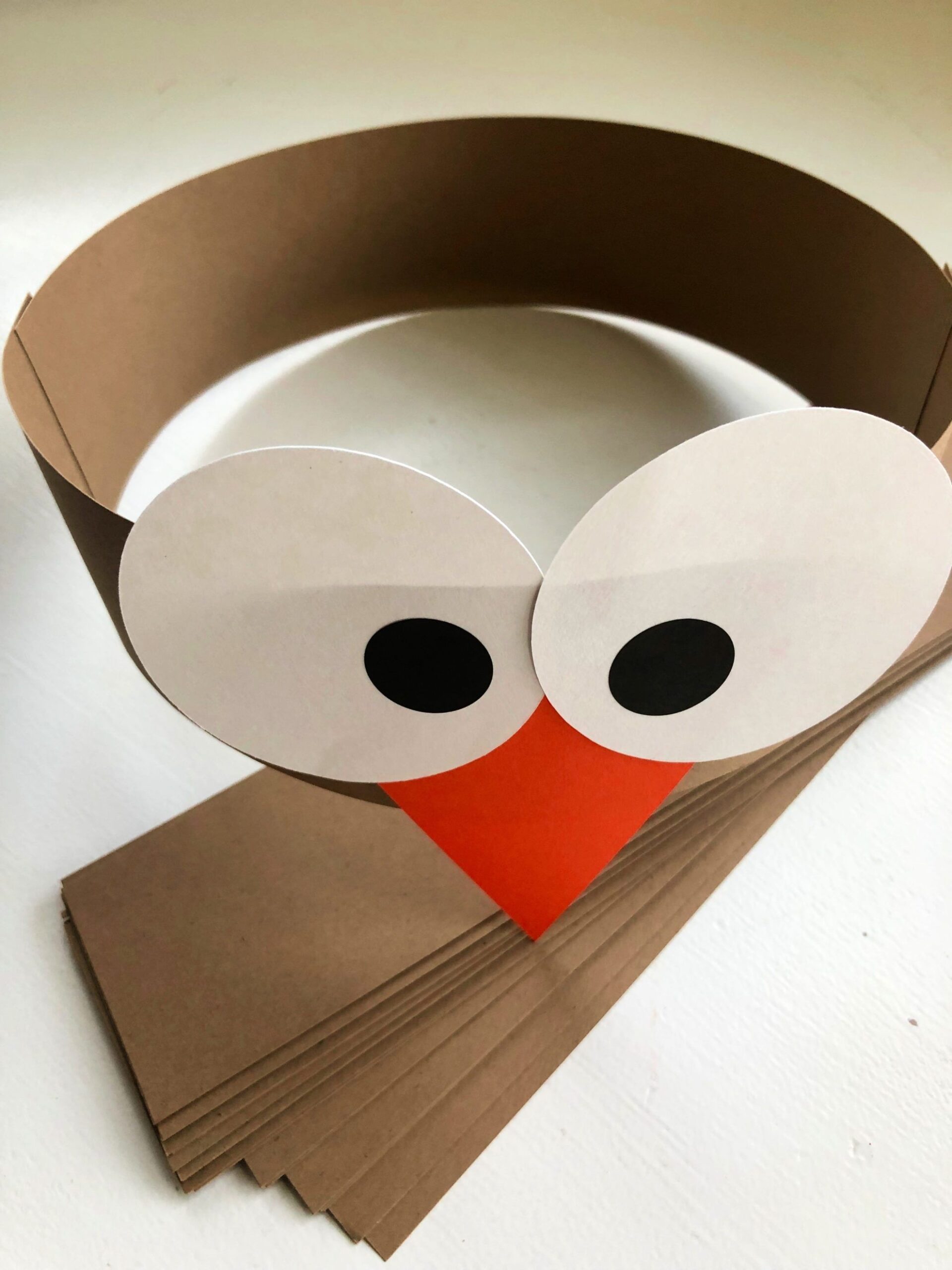 Next, carefully cut out the turkey headband template along the outline. Be sure to cut out the eye holes in the turkey’s face so you can see through the headband once it’s assembled. Once you’ve cut out all the pieces, it’s time to assemble your headband. Begin by gluing the turkey’s body to a strip of paper or cardstock that will serve as the base of the headband.