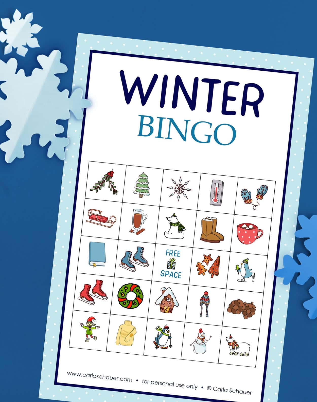 Simply download and print out the winter bingo cards PDF, and you’re ready to start playing. You can use small candies or markers to cover the squares as you call out the winter-themed words or phrases. The first player to get five squares in a row – horizontally, vertically, or diagonally – wins a prize!
