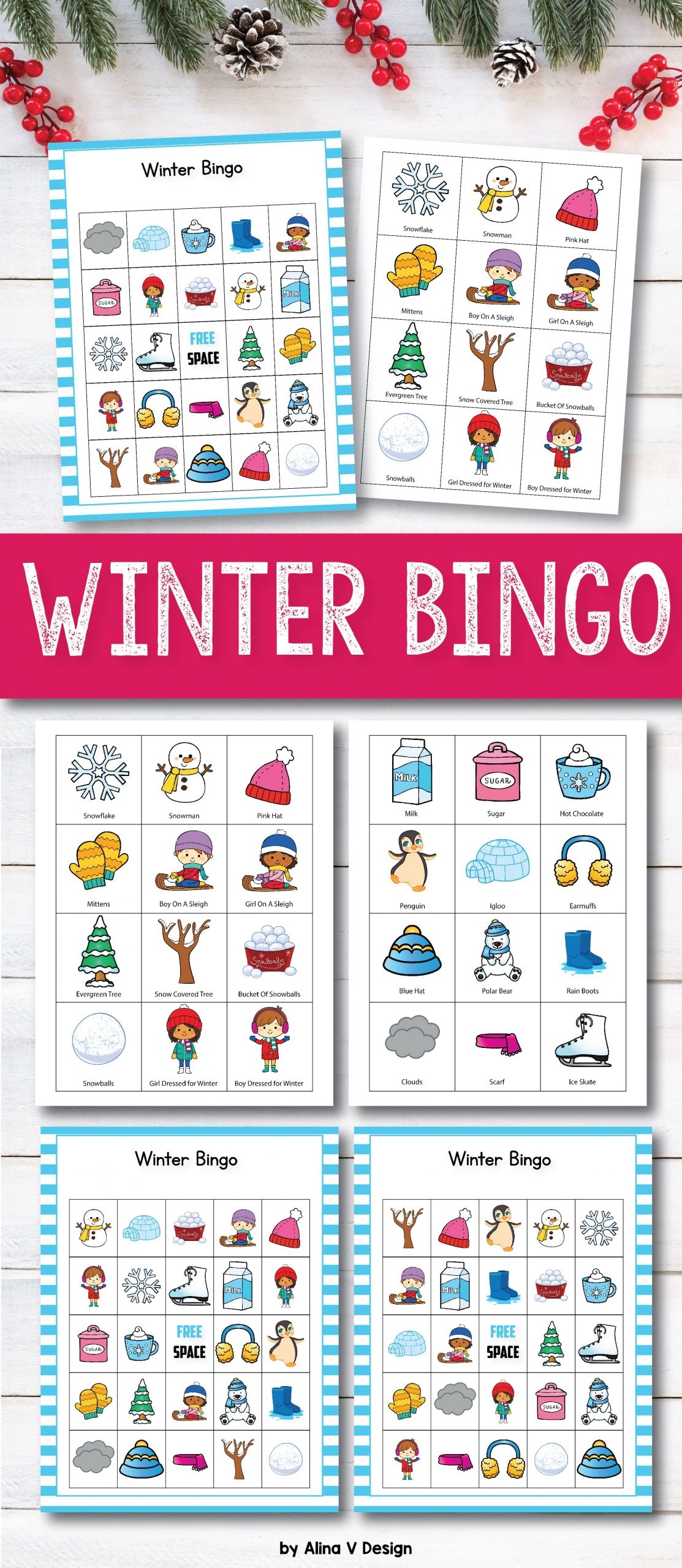 Each card is unique, so every player will have a different arrangement of winter-themed images. This adds an element of surprise and excitement to the game, keeping players engaged and entertained. With multiple cards to choose from, you can play multiple rounds without getting bored.