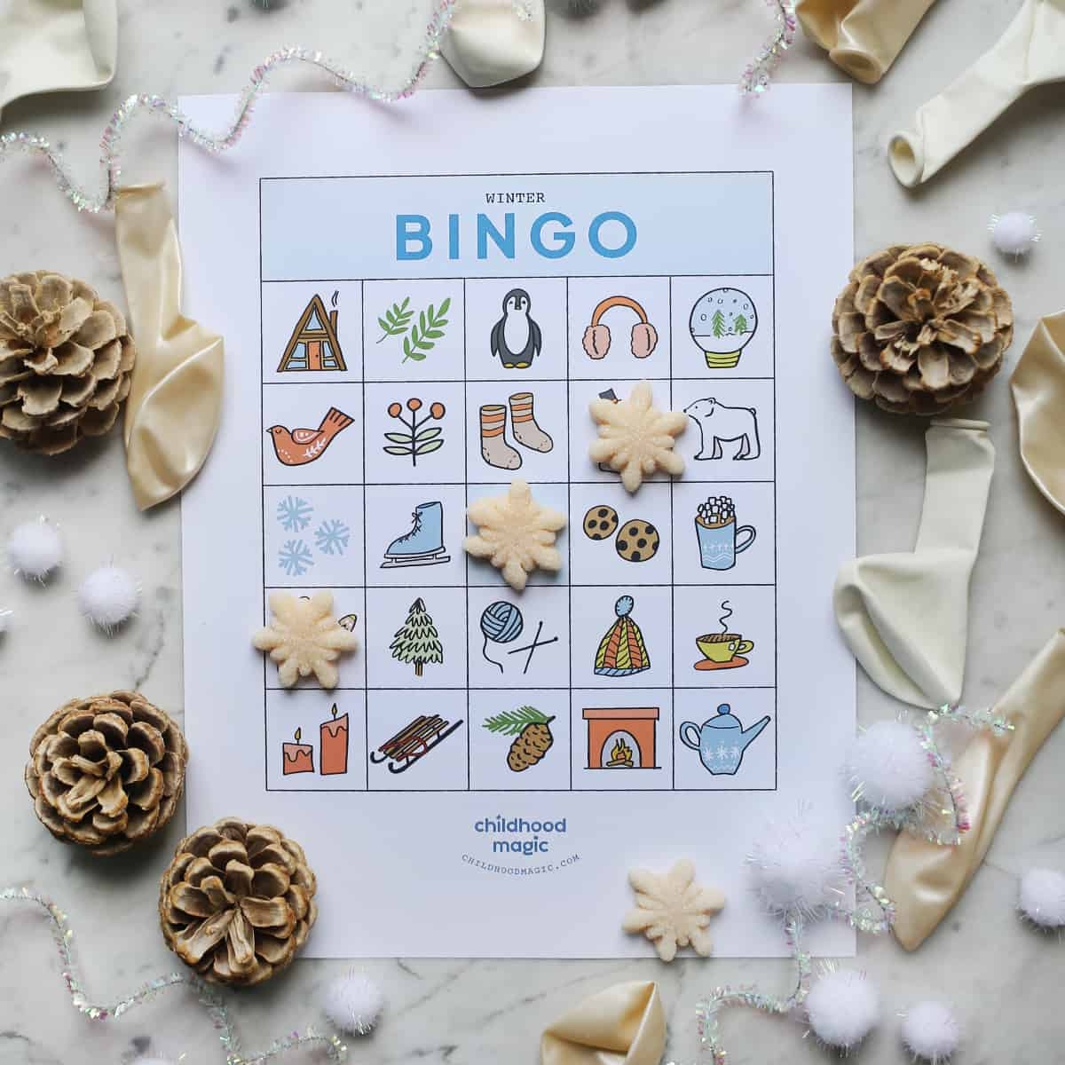 Our winter themed bingo cards feature adorable images of snowmen, mittens, hot cocoa, and more. These cards are perfect for a snowy day indoors or a festive gathering with friends and family. Simply download and print as many cards as you need, grab some bingo markers, and get ready to shout “Bingo!”