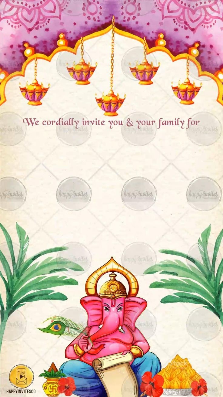If you prefer a more minimalist approach, you can opt for the ‘Simple Ganpati’ invitation card template, which focuses on clean lines and subtle colors. This design is perfect for those who prefer a sleek and modern look for their invitations.