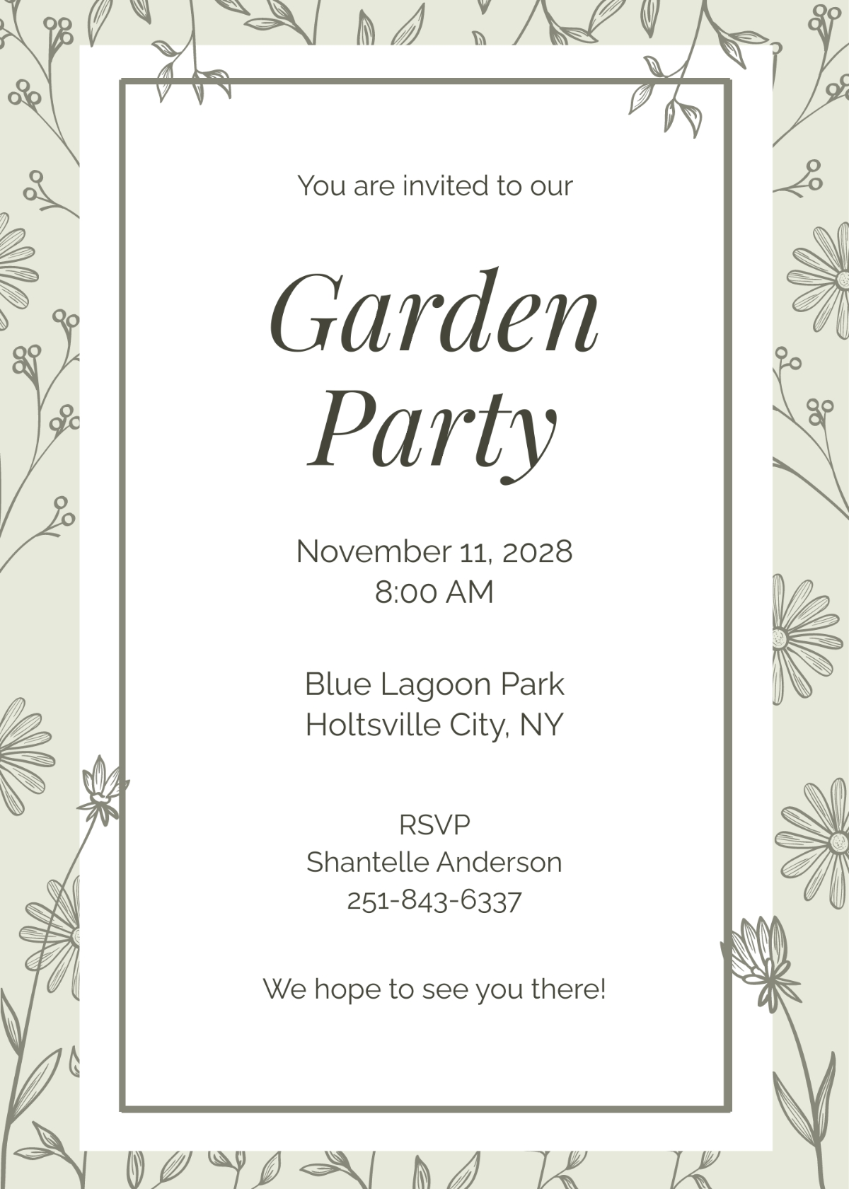 Invitations are the first glimpse your guests will have of your party, so it’s important to make them inviting and appealing. A garden party invitation template can help you set the right mood and give your guests a taste of the lovely outdoor event you have planned.