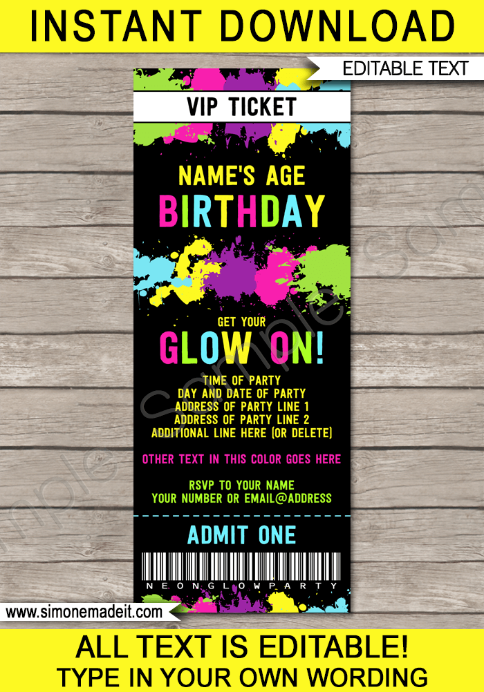1. Neon Glow Party Invitation Template: This template features bright neon colors and a fun, playful font that will get your guests excited for the party. You can customize the text and colors to match the theme of your event.