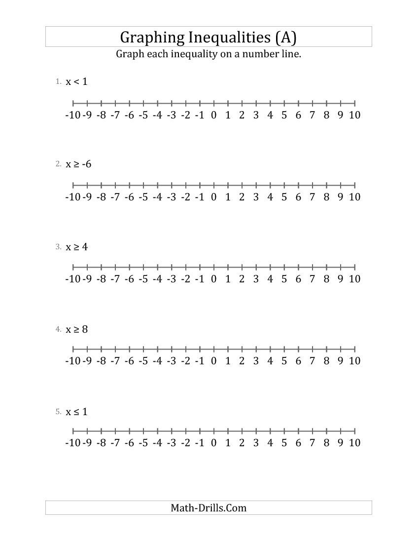 Graphing Inequalities on a Number Line Worksheet