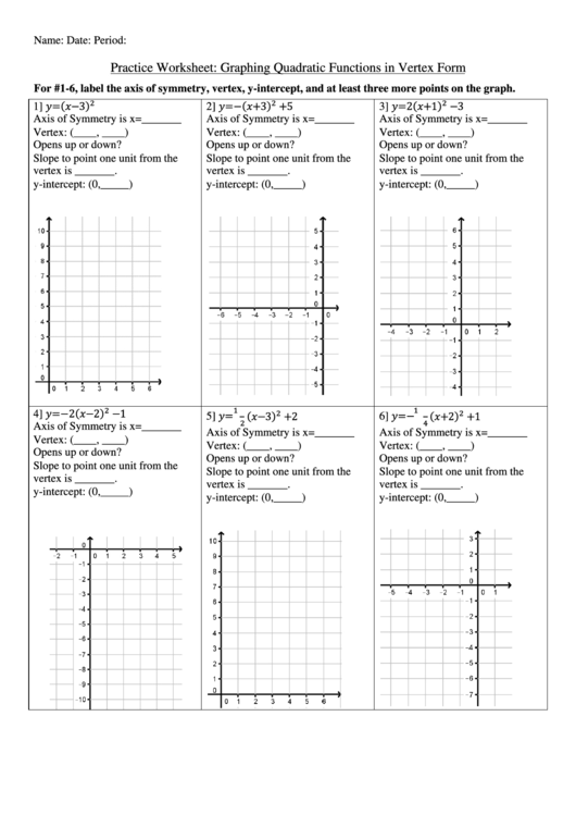 Graphing Quadratic Equations Worksheet
