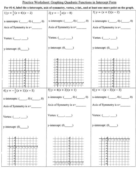 Students can also practice solving quadratic equations by graphing on these worksheets. By finding the x-intercepts of a parabola, students can determine the solutions to the corresponding quadratic equation. This hands-on approach allows students to see the connection between the algebraic method of solving quadratic equations and the graphical representation of those solutions.