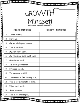 Growth Mindset Worksheets