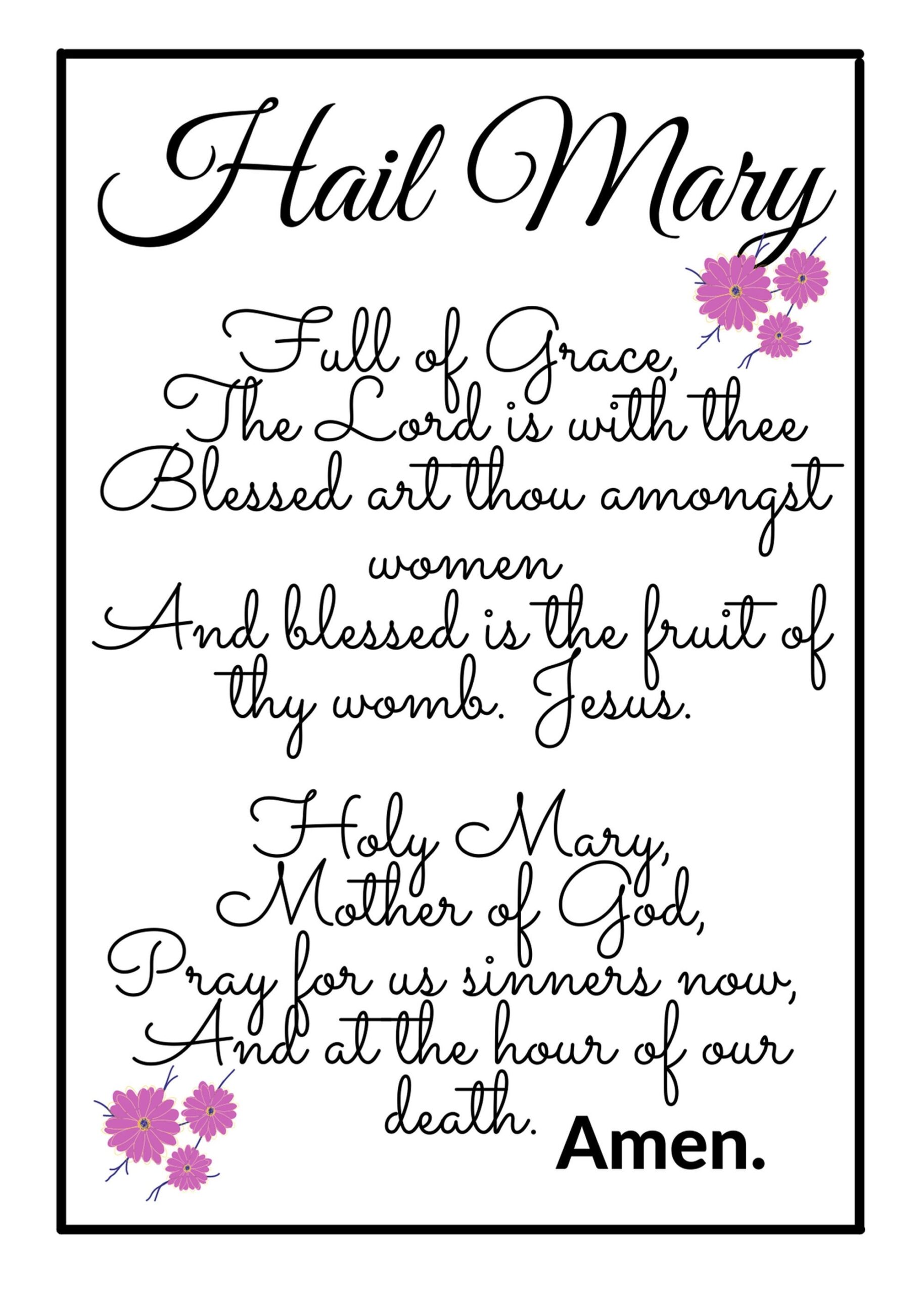 In conclusion, a hail Mary printable prayer card is a valuable tool for deepening your spiritual practice and finding comfort in times of need. Whether you use it for personal reflection or share it with others, having a physical reminder of the prayer can be a source of strength and inspiration. Consider printing out a few of these cards for yourself or loved ones, and experience the peace and solace that the Hail Mary prayer can bring.