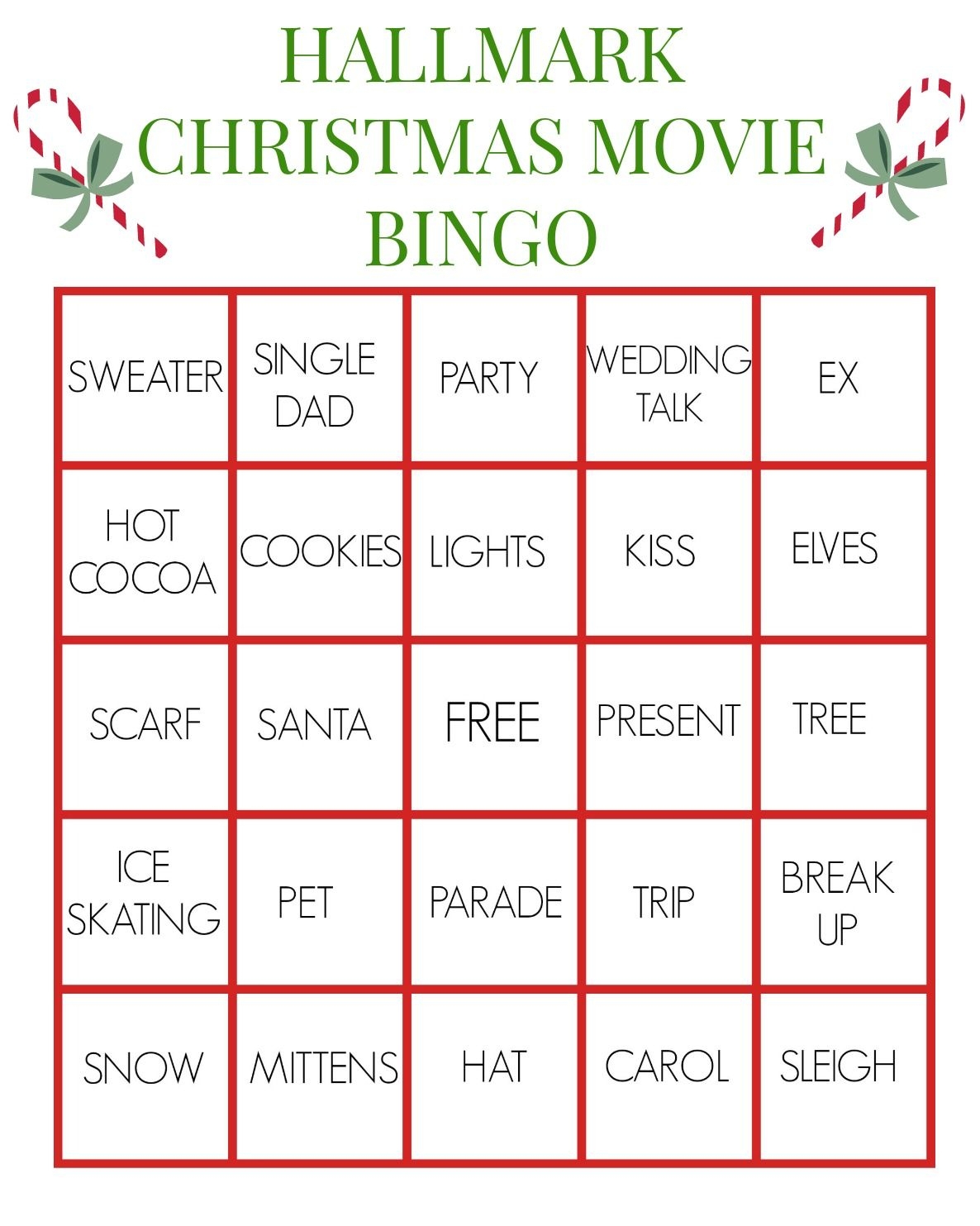 Hallmark Movie Bingo Cards Printable