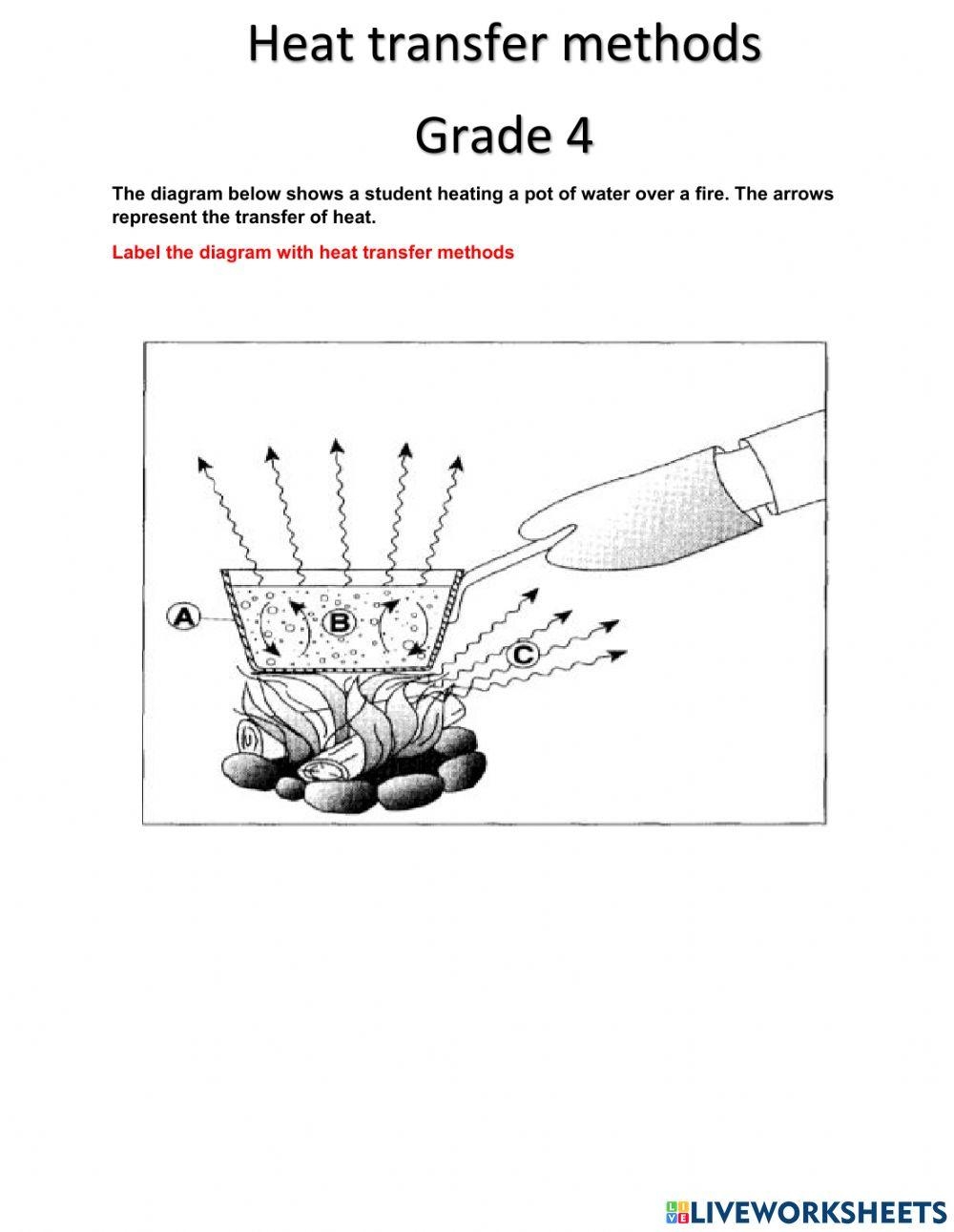A heat transfer worksheet typically consists of a series of questions and problems that require you to apply the principles of conduction, convection, and radiation. By working through these exercises, you can reinforce your understanding of heat transfer mechanisms and develop problem-solving skills in this area. These worksheets are commonly used in educational settings to assess students’ comprehension and mastery of heat transfer concepts.