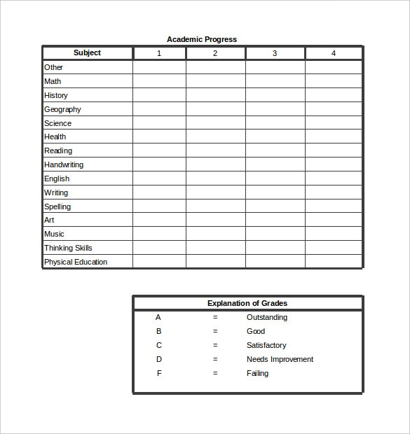 Homeschool Report Card Template Printable