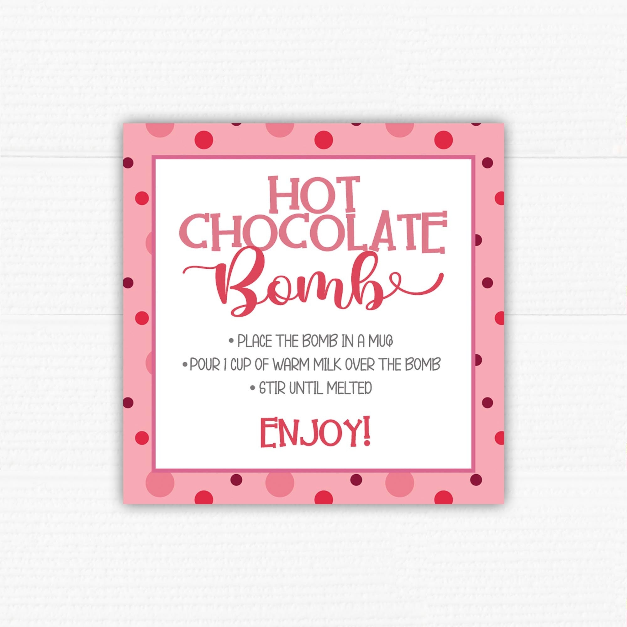 Hot Chocolate Bomb Instruction Cards Printable