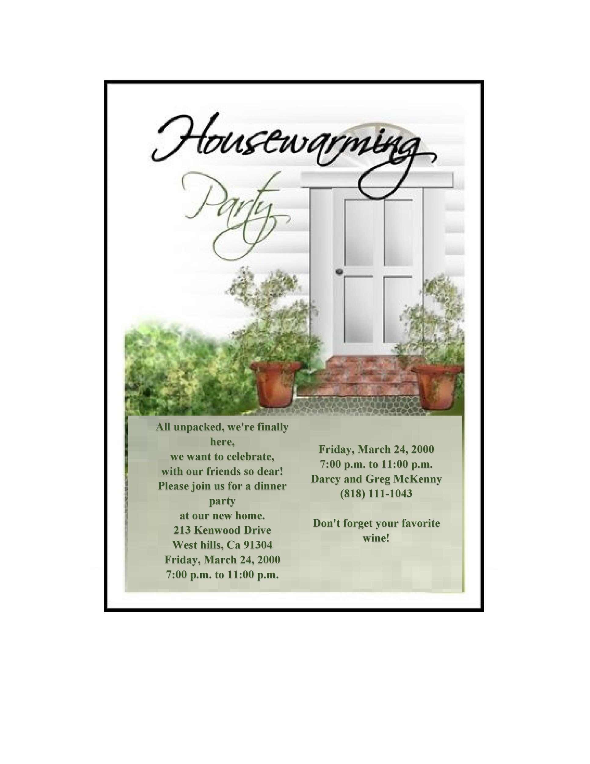 Congratulations again on your new home, and best wishes for a successful housewarming party!