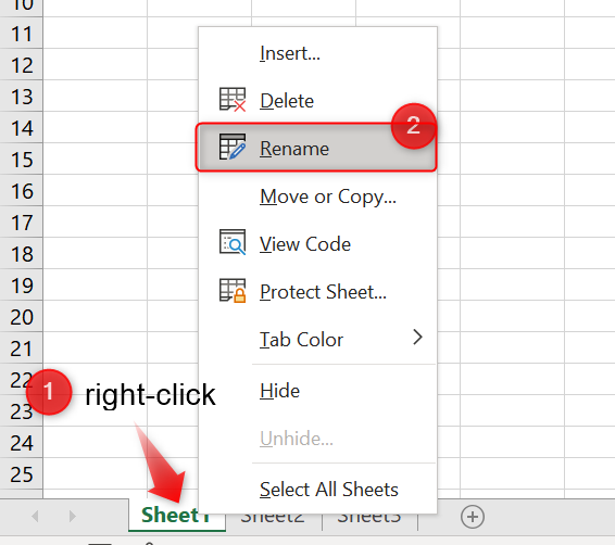 Steps to Rename a Worksheet in Excel: