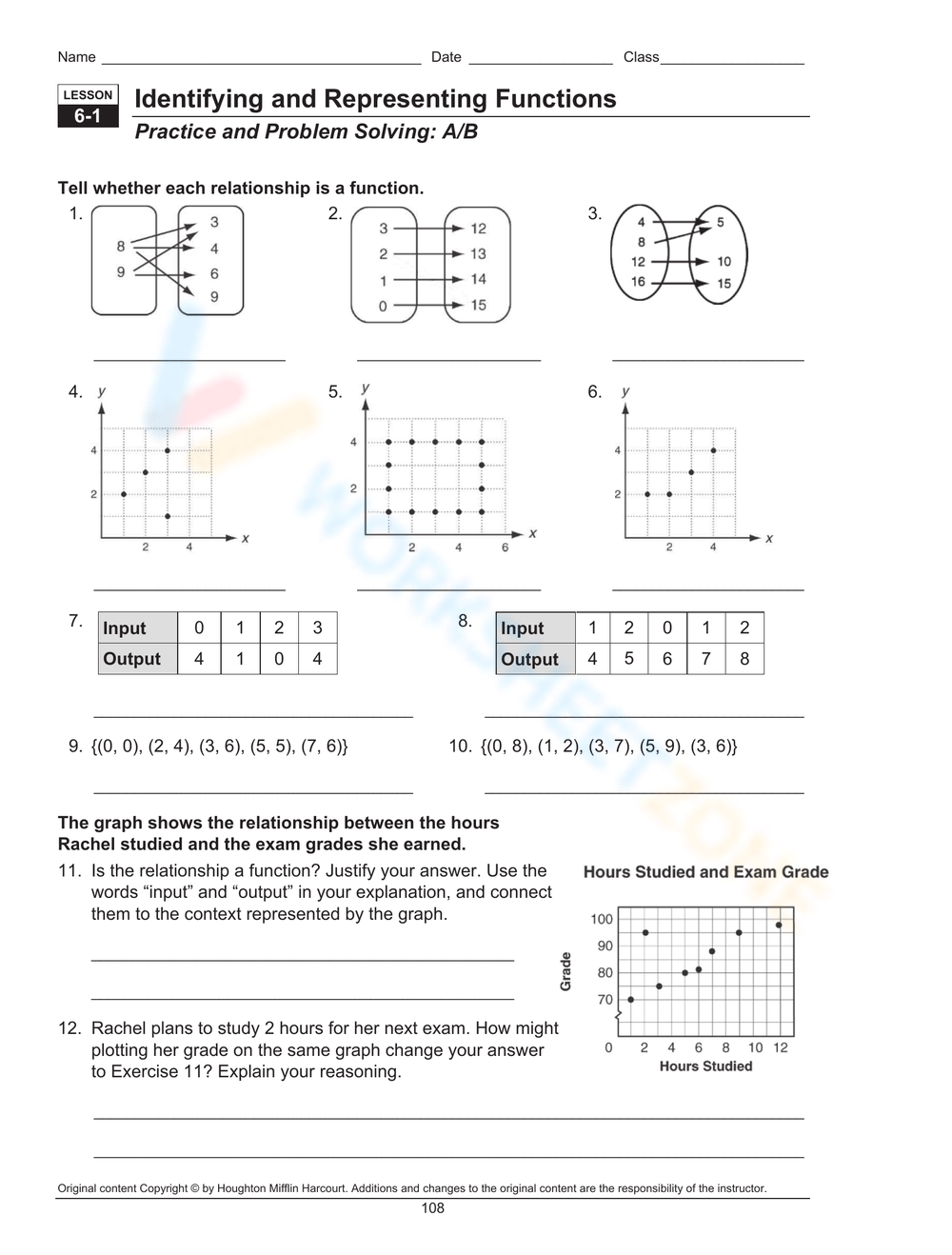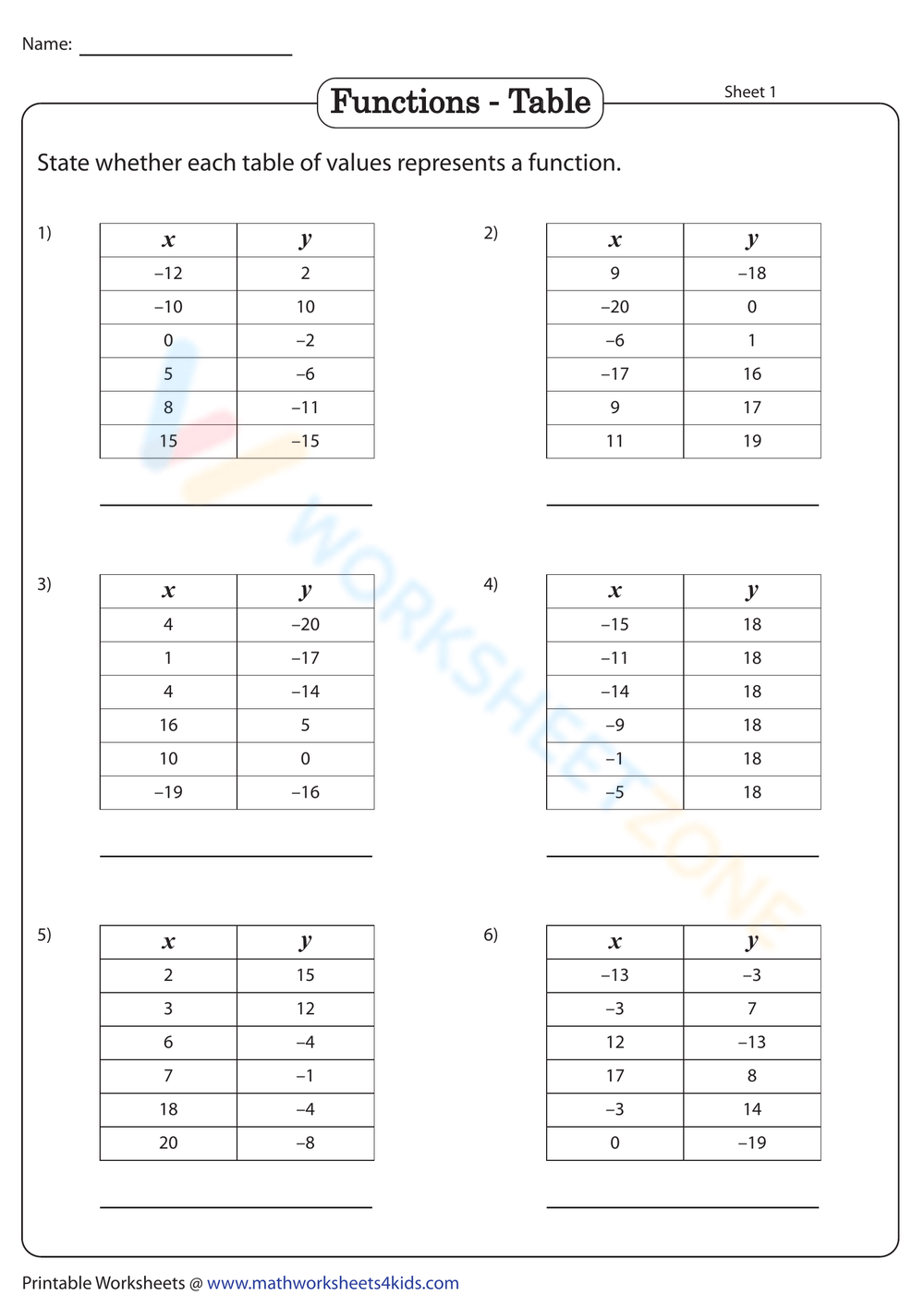 These worksheets typically include tables, graphs, equations, and word problems that require students to examine the data given and determine if it follows the definition of a function. By working through these worksheets, students can develop their critical thinking skills and strengthen their understanding of functions in a real-world context.