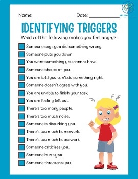 One useful tool for identifying triggers is a worksheet that prompts individuals to reflect on their emotions and the circumstances surrounding them. This worksheet can help individuals pinpoint patterns and identify common triggers that may be contributing to their emotional responses.