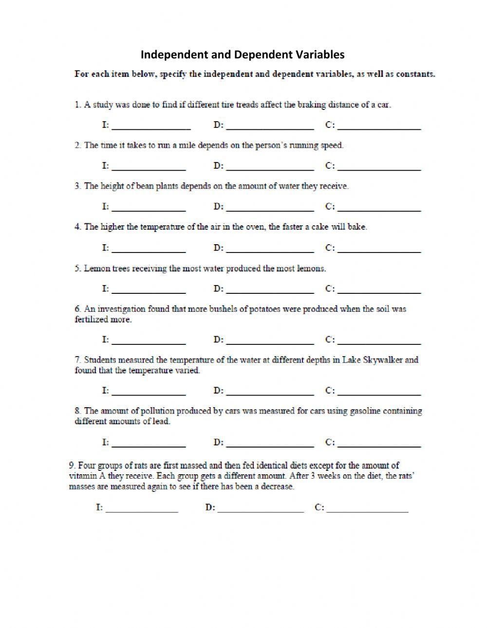 In conclusion, an independent dependent variable worksheet is a valuable resource for students to practice and reinforce their understanding of these essential concepts in scientific research. By engaging with these exercises, students can improve their analytical skills and gain a better grasp of how variables interact in experimental settings. Overall, mastering the concepts of independent and dependent variables is crucial for conducting valid and reliable experiments and drawing meaningful conclusions.