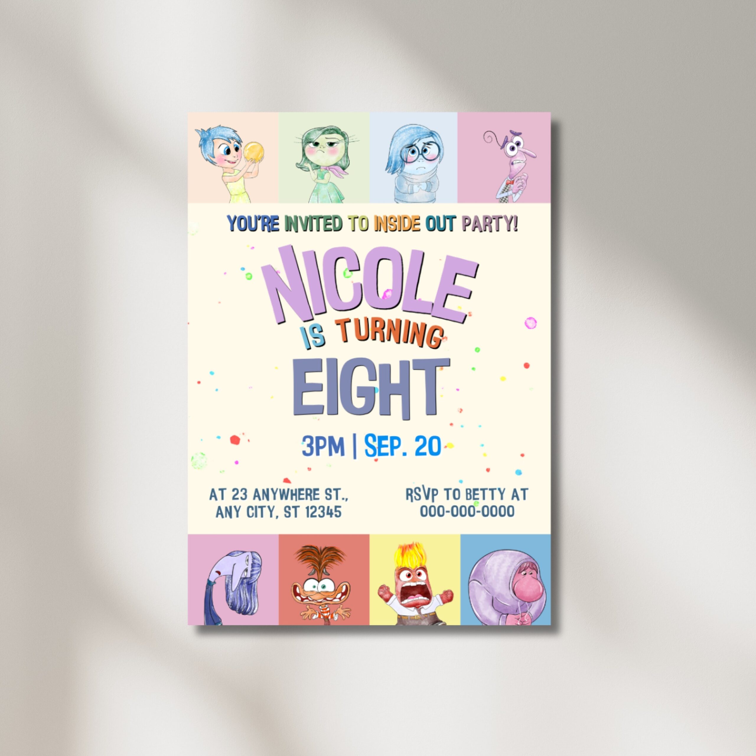 One of the best things about using an Inside Out invitation template is the convenience it offers. With just a few clicks, you can personalize the invitation with your party details, such as the date, time, location, and RSVP information. You can also add a personal touch by including a special message or photo. Once you’re happy with the design, simply download and print the invitations or send them digitally to your guests.