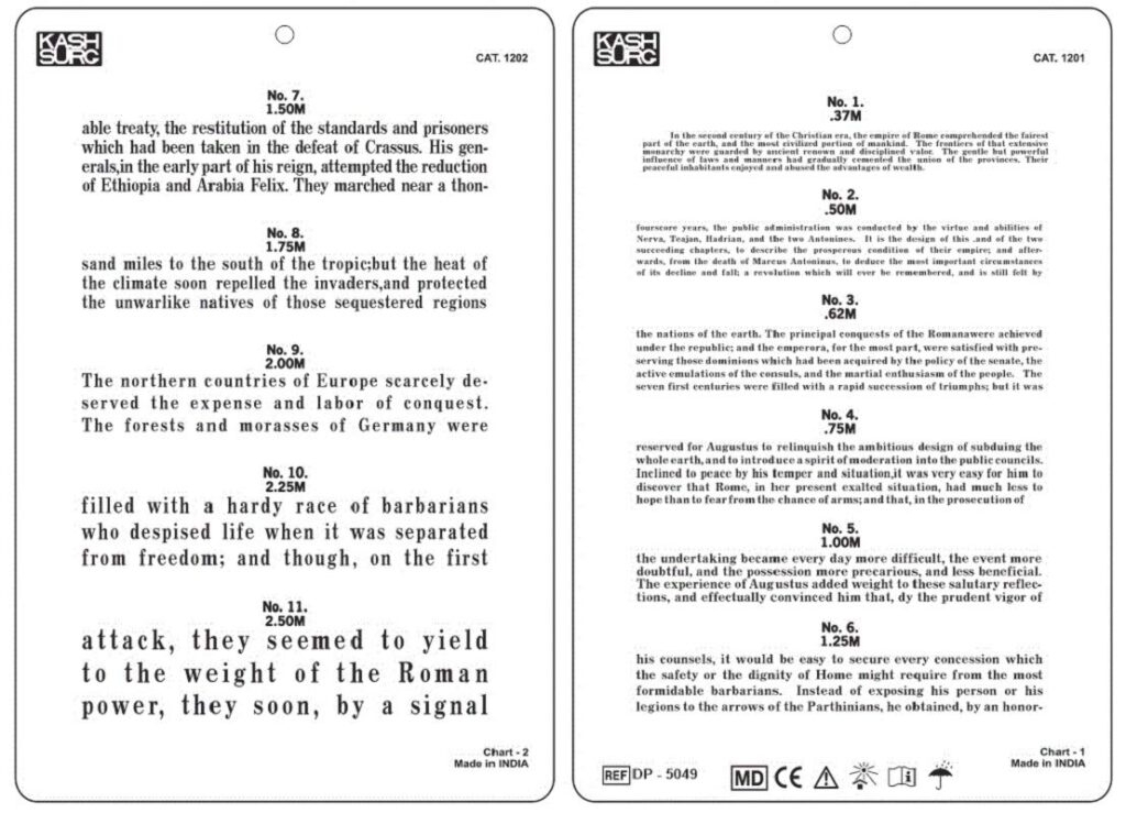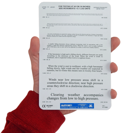The Jaeger test card consists of a series of paragraphs in various font sizes that are used to determine the smallest font size a person can read at a normal reading distance. By printing out a Jaeger test card, you can perform this test on yourself or others to assess near vision accurately.
