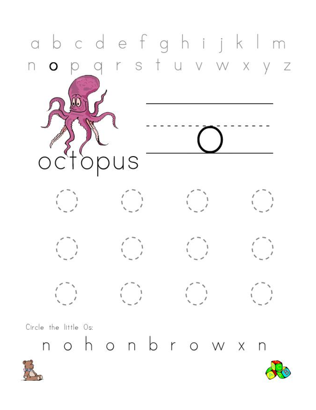 2. Find the O Words: In this activity, children can identify and circle words that start with the letter O. This helps them with letter recognition and beginning sounds.