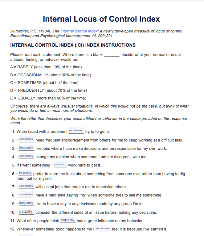 Locus of Control Worksheet