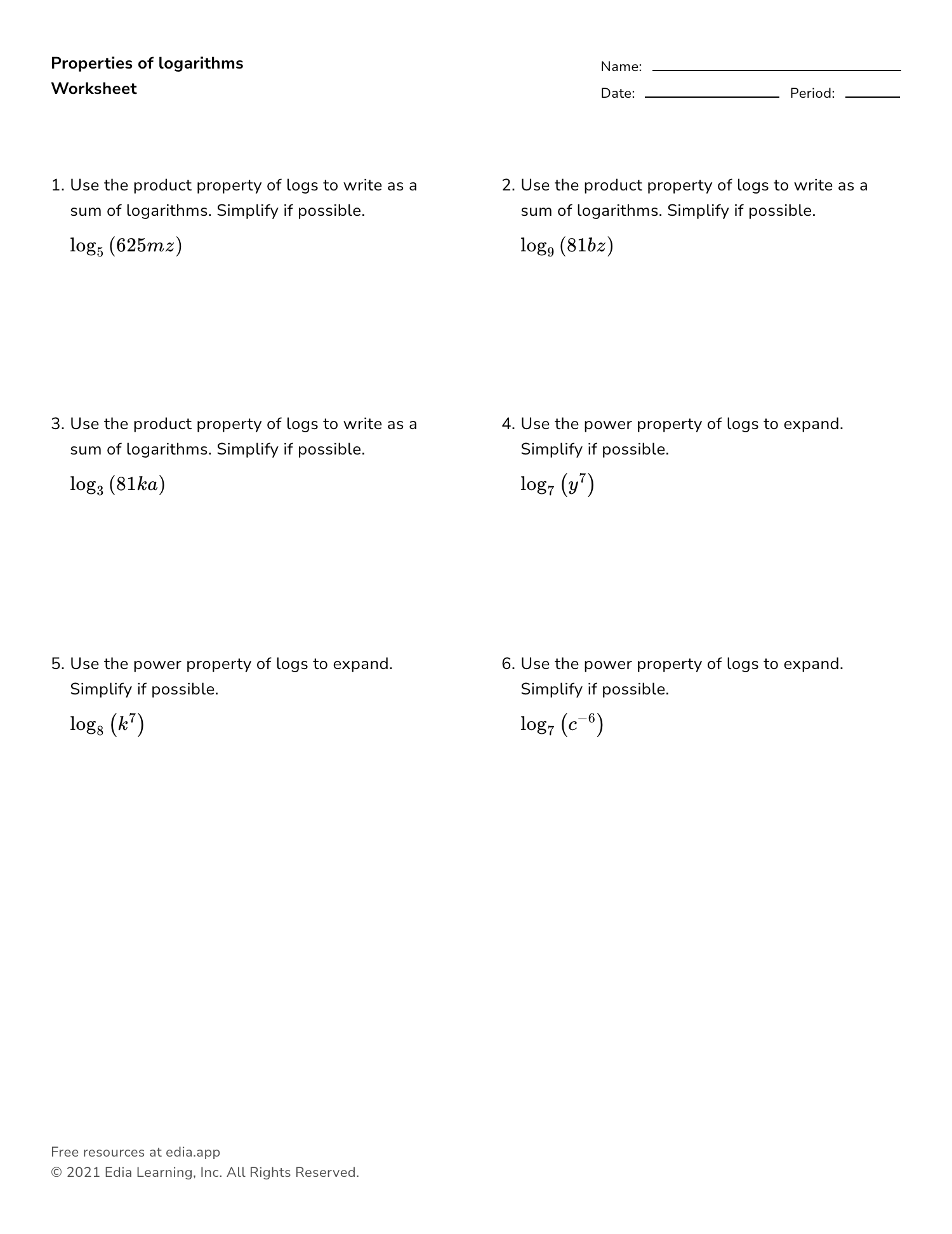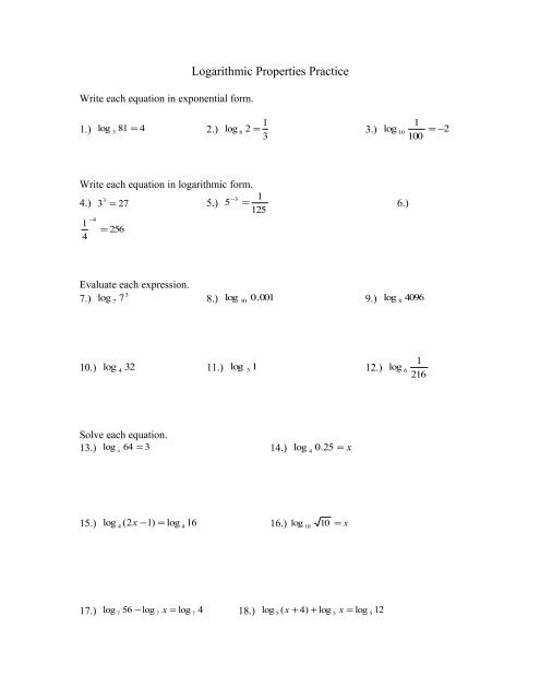 Log properties worksheet is a valuable tool for students to practice and master the various properties of logarithms. Logarithms are an important concept in mathematics that are used to solve complex equations and represent exponential functions. Understanding the properties of logarithms is essential for students to excel in higher-level math courses.