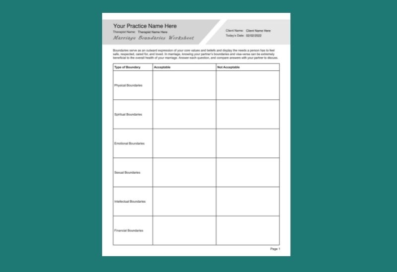 Download and Print marital counseling worksheets Listed below