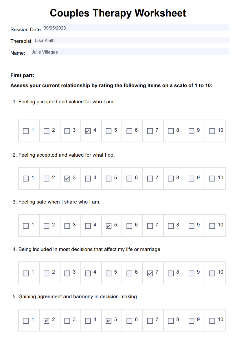 Couples Therapy Worksheet Example Free PDF Download Worksheets