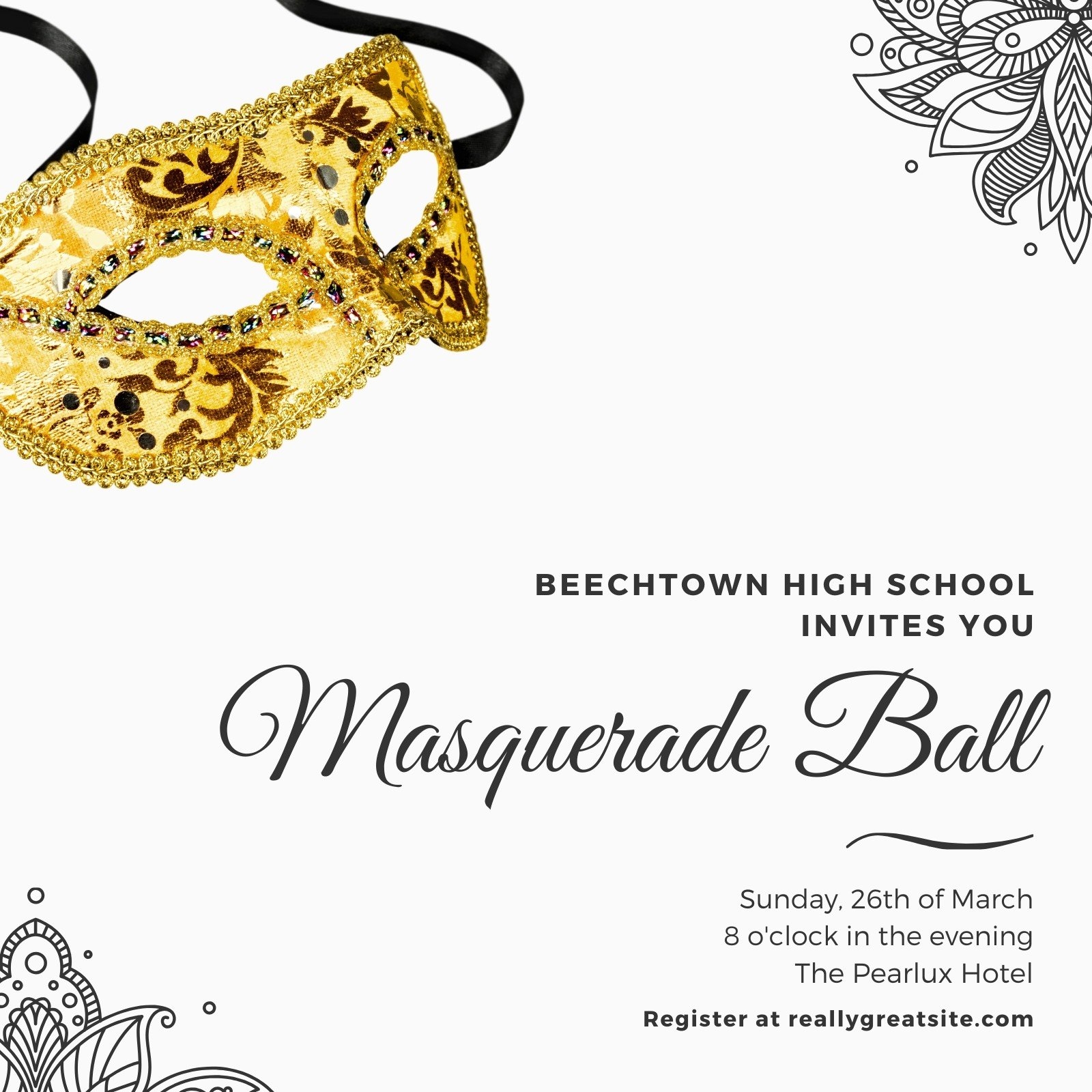 1. Classic Elegance: Traditional masquerade ball invitations often feature intricate designs, filigree patterns, and rich colors like black, gold, and deep red. These templates exude sophistication and set the tone for a formal event.