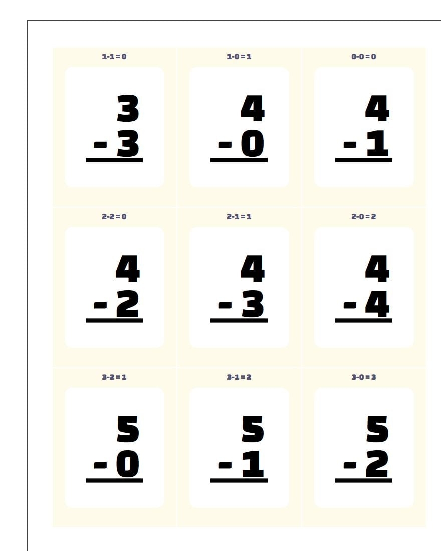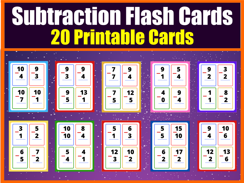 1. Improves fluency: By practicing subtraction problems with flash cards, students can improve their speed and accuracy in solving math problems. This increased fluency can help students build confidence in their math skills and perform better on tests and assessments.