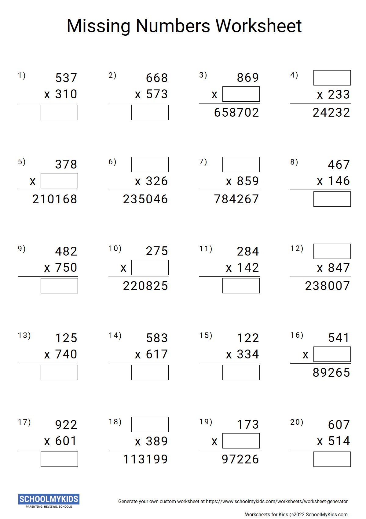 Students can benefit from math worksheet multiplication by practicing their multiplication tables and learning different strategies for solving multiplication problems. These worksheets can be tailored to suit the needs of individual students, allowing them to progress at their own pace and build confidence in their multiplication skills.