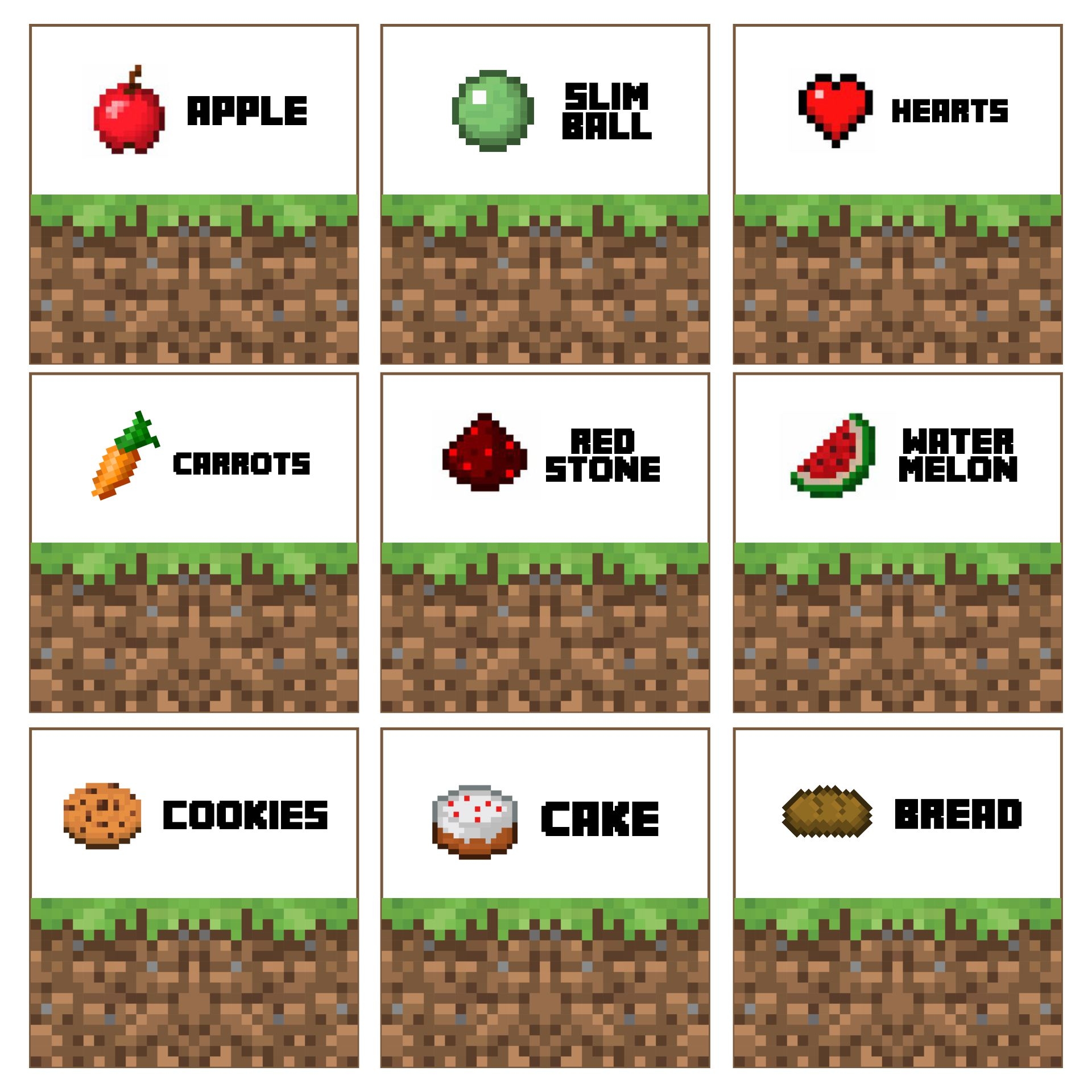So, if you’re looking for a fun and creative way to label your party snacks, consider using Minecraft printable food tent cards. With their customizable designs and practical use, these printables are sure to be a hit at your next event. Download your favorite designs, print them out, and get ready to wow your guests with a one-of-a-kind party display!