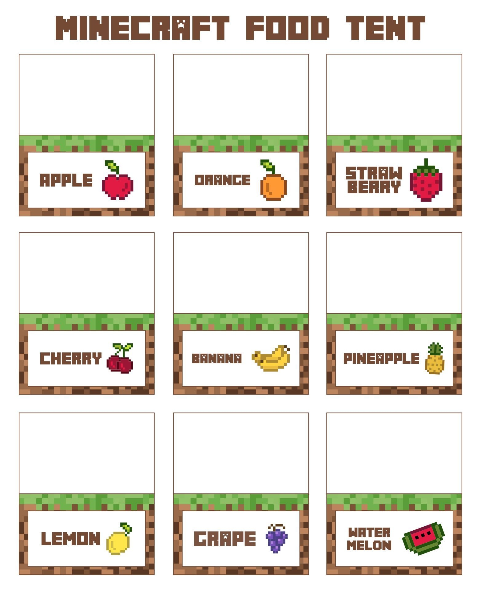 Minecraft Printable Food Tent Cards