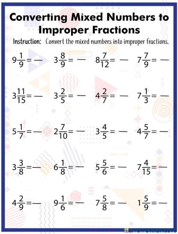 1. Practice Conversion: Worksheets provide ample opportunities for students to practice converting mixed numbers to improper fractions and vice versa. This repetition helps solidify the process in their minds and builds confidence in their abilities.