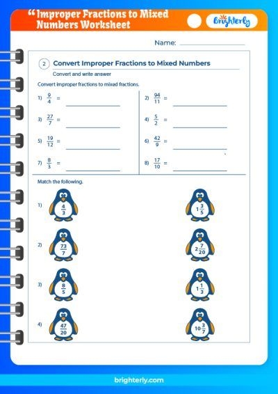 Below is a worksheet on converting mixed numbers to improper fractions. Use this practice sheet to sharpen your skills and improve your understanding of fractions: