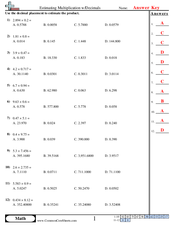 One key aspect of multiplying decimals is understanding the placement of the decimal point in the final answer. When multiplying decimals, students need to count the total number of decimal places in both numbers and place the decimal point in the final answer accordingly. Worksheets can help students practice this concept by providing them with multiple problems to solve.