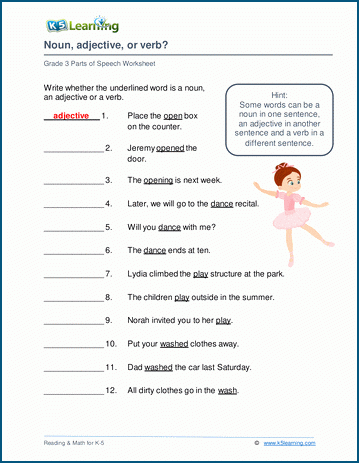A typical noun verb worksheet will consist of a series of sentences with blanks that students need to fill in with the appropriate nouns or verbs. Students may also be asked to identify whether a word in a sentence is a noun or a verb, or to rewrite sentences using different nouns or verbs.