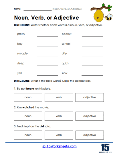 Noun Verb Worksheet