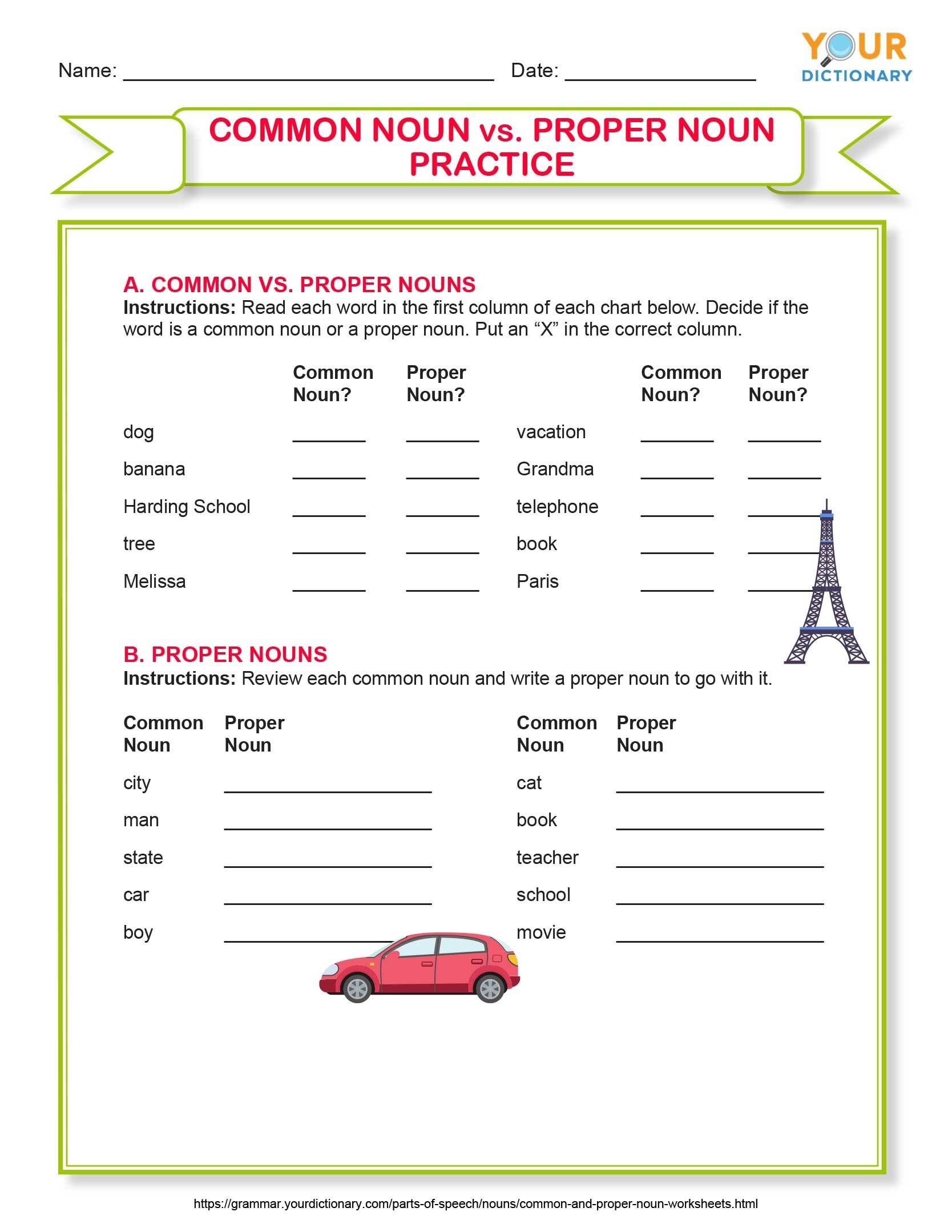 Download and Print nouns proper and common worksheets Listed below
