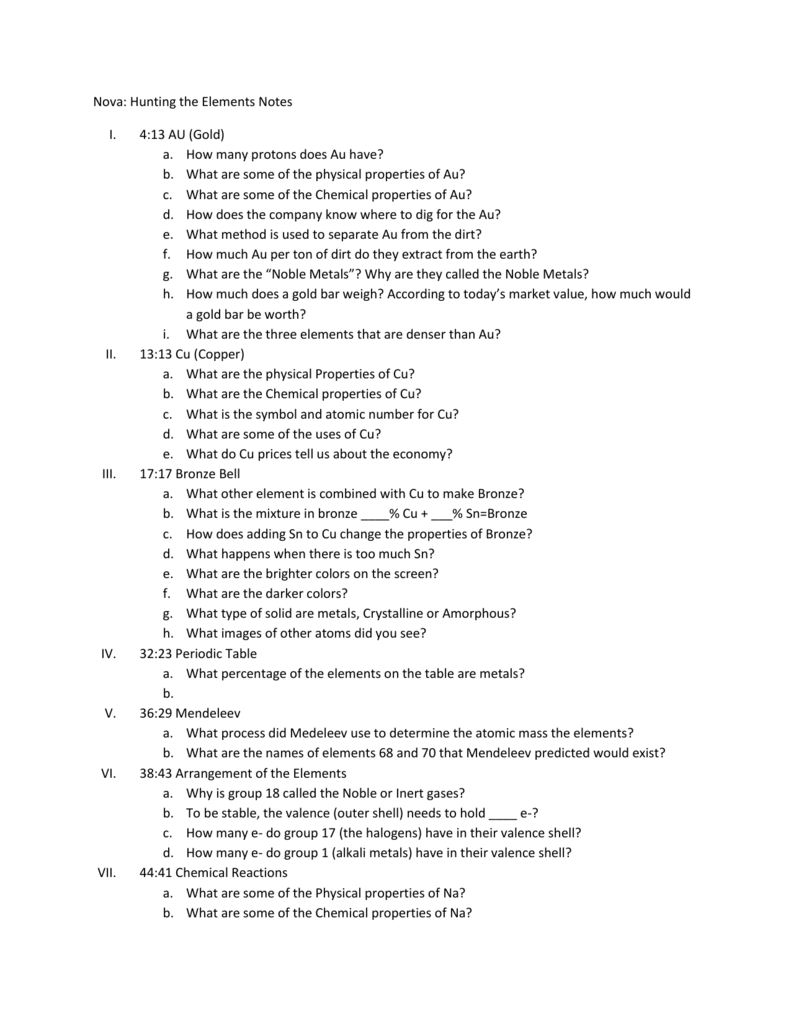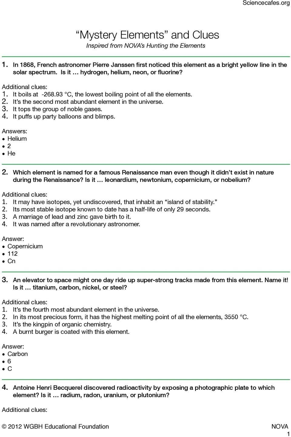 Nova Hunting The Elements Worksheet Martin Lindelof