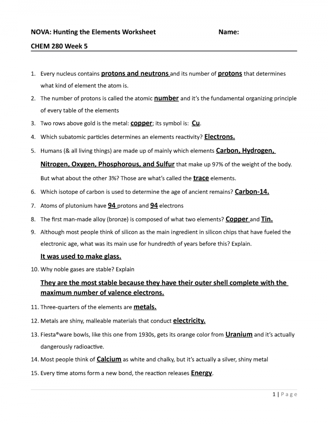10 Nova Hunting The Elements Worksheet Worksheets Decoomo