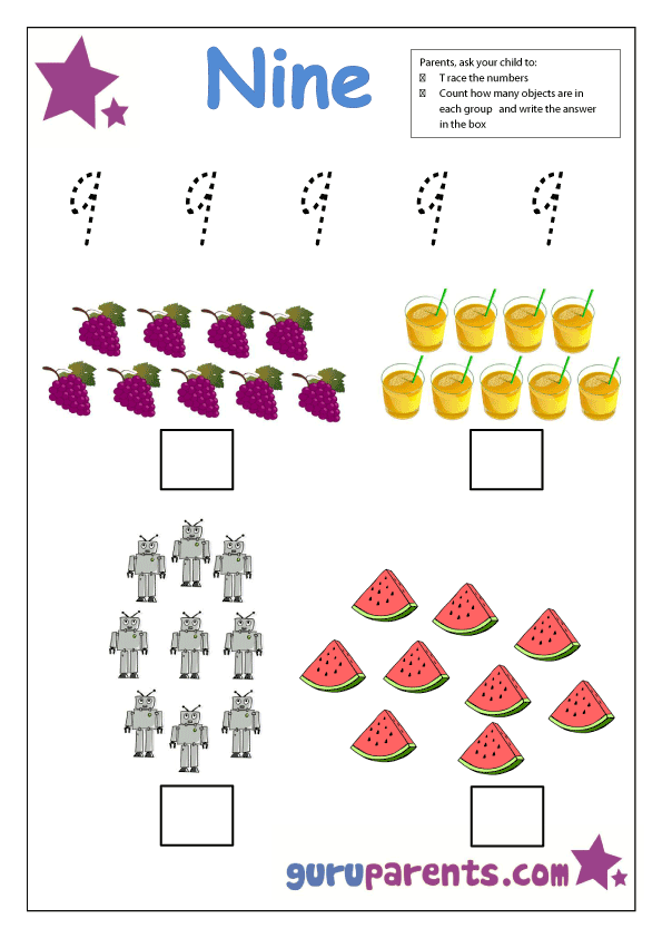In addition, number 9 worksheets can also help children improve their counting skills. By counting objects up to the number 9 and completing number 9-related activities, children can practice and reinforce their understanding of numbers and counting sequences.