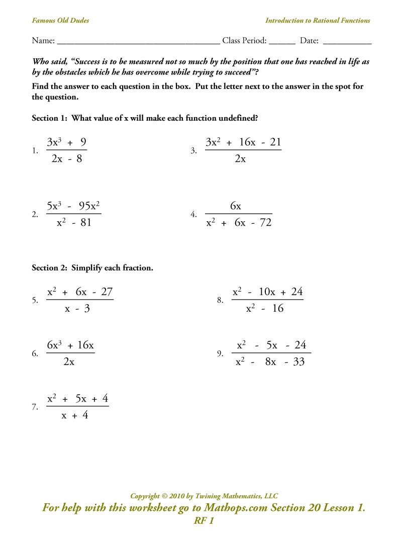Kuta Software offers worksheets that focus specifically on odd or even rational functions. These worksheets provide students with practice problems to help them identify the symmetry of rational functions and determine whether they are odd, even, or neither. By working through these worksheets, students can strengthen their understanding of these concepts and improve their problem-solving skills.