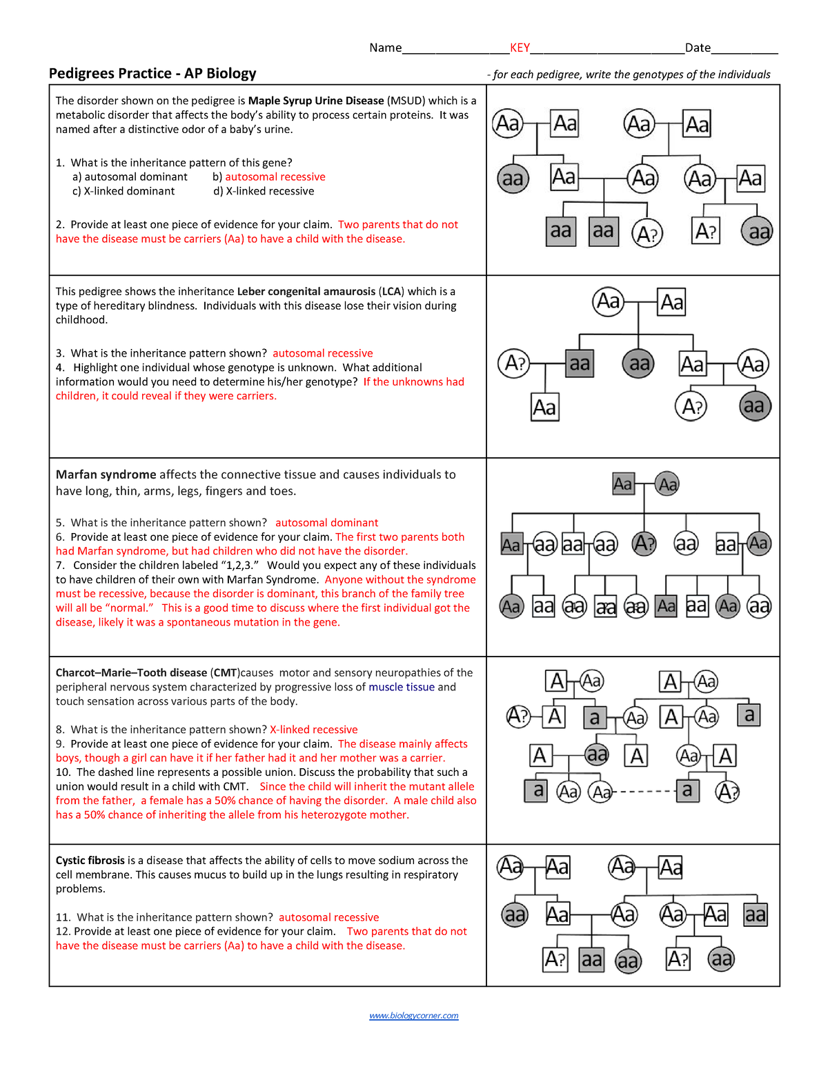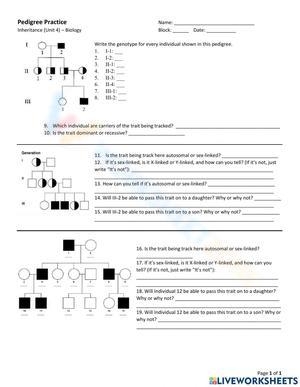 Pedigree Practice Worksheet