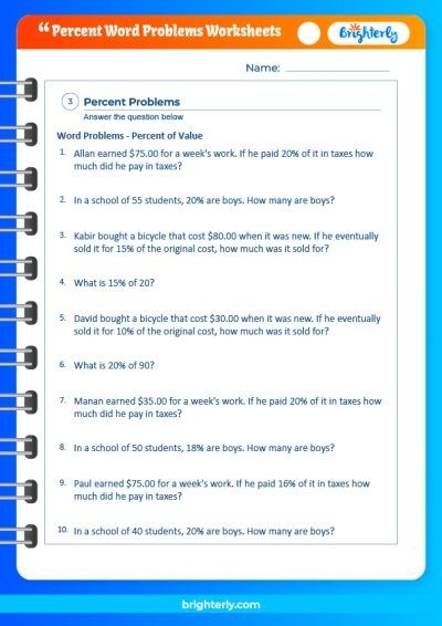 Overall, percent word problems worksheets are a valuable tool for students to practice and improve their math skills. By working through these problems, students can strengthen their understanding of percentages and develop their problem-solving abilities. These worksheets can help students build confidence in their math skills and prepare them for more advanced math concepts in the future.