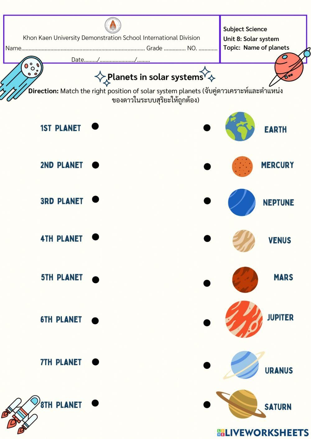 One common activity found on planets worksheets is matching the planet with its corresponding description. This exercise challenges students to recall key facts about each planet and helps them differentiate between the different characteristics of each celestial body. Another popular activity is labeling a diagram of the solar system with the names of the planets in their correct order.