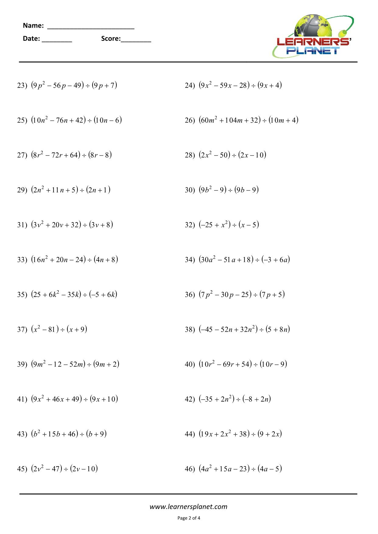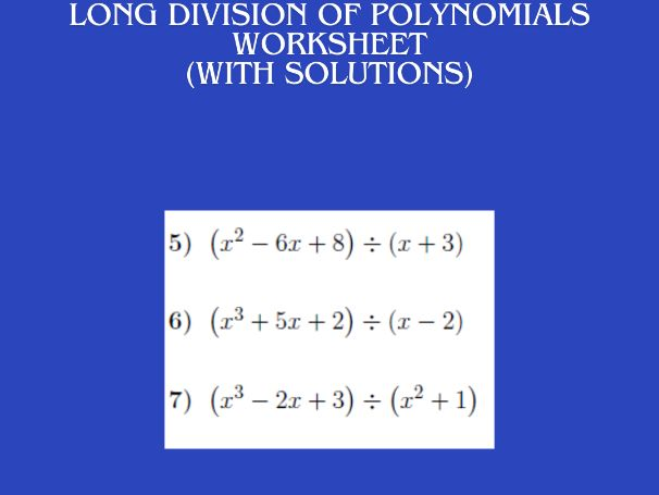 Another type of problem that may be included in polynomial division worksheets is dividing a polynomial by a polynomial. This requires more advanced skills and knowledge of polynomial division techniques. Students must be able to factor polynomials, identify common factors, and perform the division accurately to solve these types of problems.