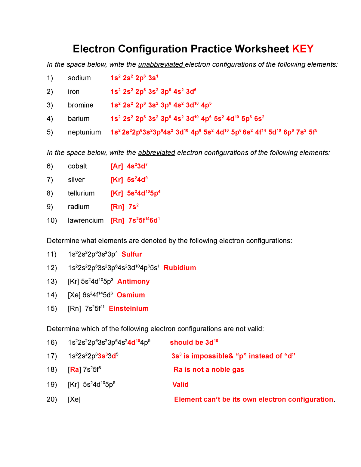 Practice Worksheets Answer Key