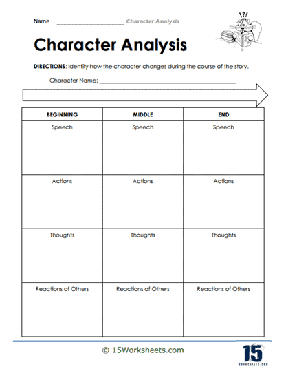 Character analysis worksheets provide a structured way for readers to examine the personalities, motivations, and relationships of characters in a story. By answering specific questions about a character’s traits, actions, and development throughout the story, readers can gain a deeper understanding of the character’s role in the narrative.