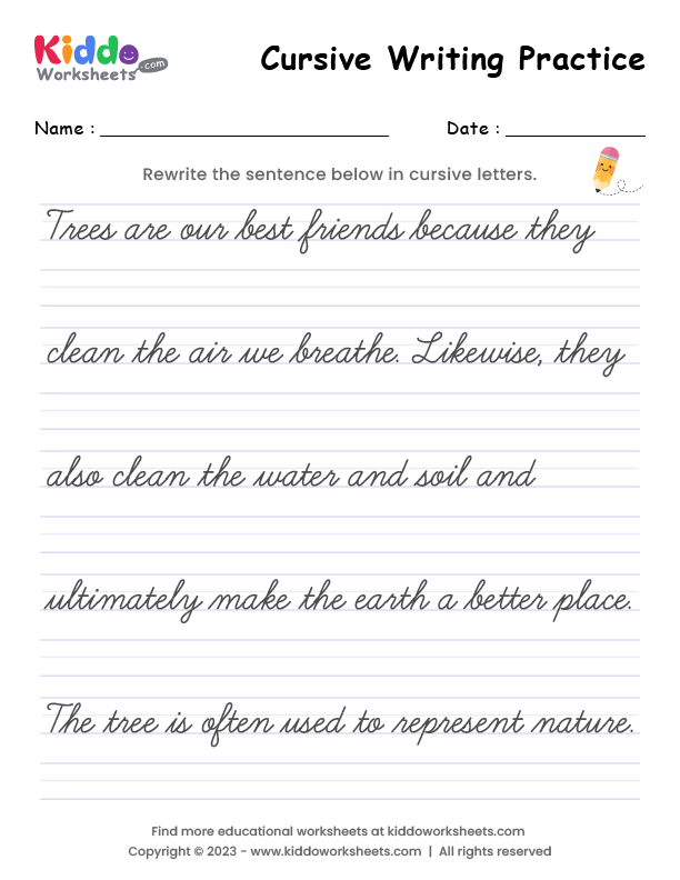 Printable cursive writing worksheets typically feature a series of exercises that guide you through the process of writing in cursive. These worksheets often include practice sheets for individual letters, words, and sentences in cursive. By following the guidelines provided on the worksheets, you can gradually improve your cursive writing skills and achieve a more polished and consistent handwriting style.